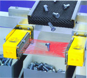 小部件检测系统经济可靠的部件检测光幕提供了一套简单、经济、高可靠性的检测小部件通过的方案,而不用考虑部件通过的位置,包括机械零部件校验和零部件的计数应用。.光幕的检测区域为90mm宽 .自含式设计的发射器和接收器 .坚固的限位开关形外壳 .环氧树脂密封电路 .调制红外光避免环境光干扰 .快速的1ms响应时间 .输出有5ms的脉冲延时,能够可靠的检测高速通过的小部件 .接收器NPN+PNP两个输出可同时使用 .检测距离从100mm到2.29m可选分辨率5.6mm、7.6mm或25到38mm |