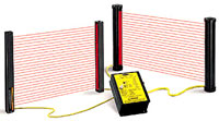 红外光光幕安装于危险区域周围,对操作者进行保护。任何不透明物体如手臂等,进入防护区域,控制器将发出停机信号防护距离最大达18M。 双光幕系统是使用一个控制器控制两套光幕,节省接线和面板位置,节省控制盒成本。 控制器可以自动感知与其相连接的每一对传感器的长度,无需手动设置。传感器有不同长度,从114 mm到 1.8 m。每对传感器配备单独的对准指示,通过FMEA测试,保证了控制的可靠性。